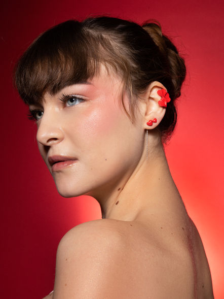 Abbiamo collaborato con Ossimoro per creare uno shooting fotografico che mettesse in risalto la bellezza dei suoi orecchini. Per realizzare questo obiettivo, abbiamo optato per un makeup raffinato e magico, caratterizzato dai toni duochrome. Questa scelta ha permesso di creare un effetto visivo sorprendente, in grado di catturare l'attenzione e di suscitare curiosità.